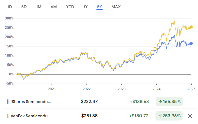 ヴァンエック半導体ETF(SMH)とiシェアーズ半導体ETF(SOXX)はどう違うのか。